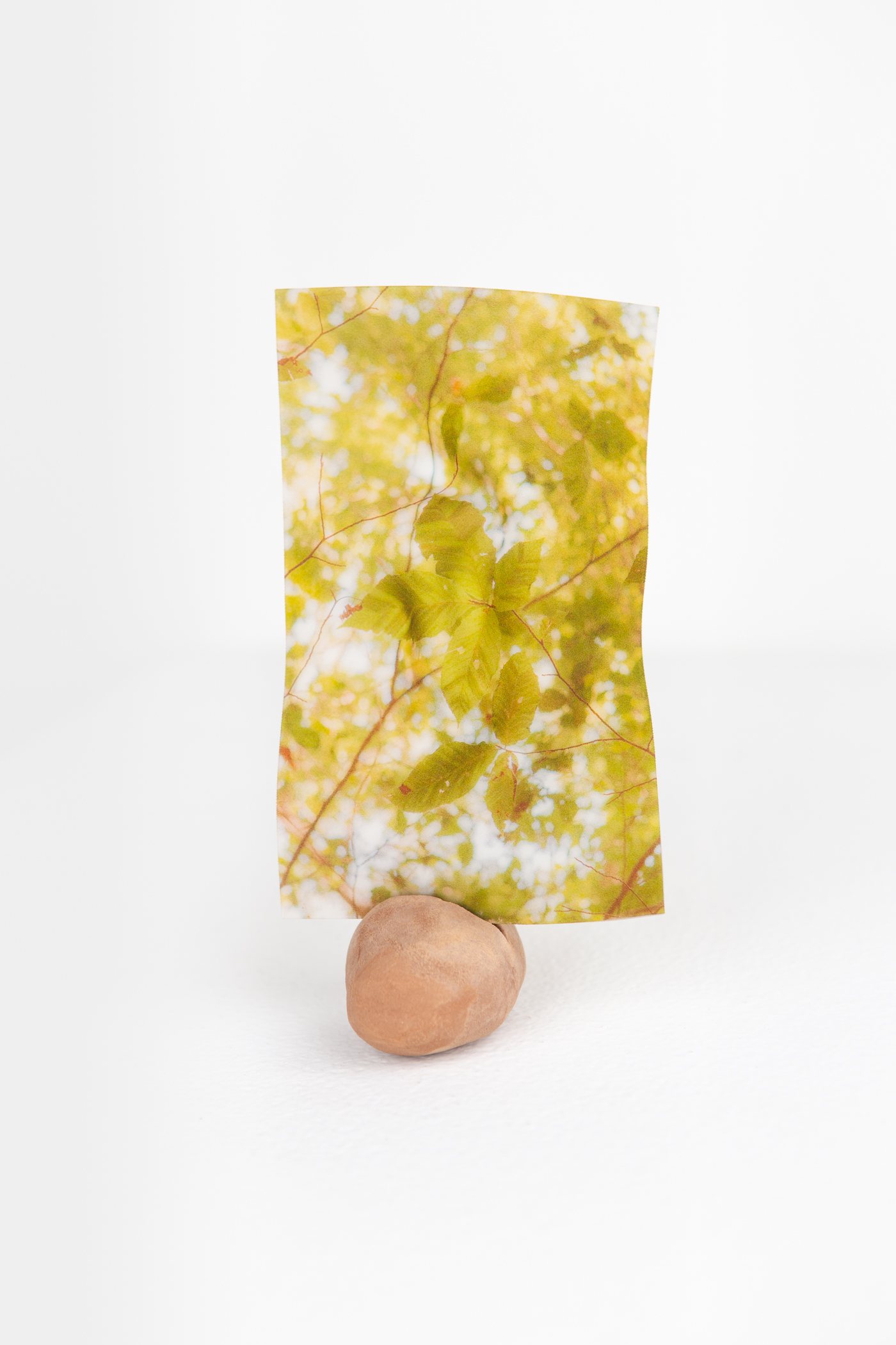 The photo-text-textiles in Touch Screen Sensitivity — cyanotypes printed on recycled cotton muslin, bleached and toned with natural dyes derived from plants and kitchen scraps — weave together meditations on multispecies encounter. Focusing on low-to-the-ground life-forms like weeds and tadpoles, the work challenges the “omniscient” perspective of conventional landscape photography, instead attending to the resiliency and adaptability of small organisms in human-altered ecologies. The works also respond to contemporary habits of image consumption by drawing on the traditional forms of the Chinese screen and scroll. Rejecting distracted modes of engagement with “dematerialized” pictures, the screens and scrolls in Touch Screen Sensitivity cultivate slow, sensuous, and attentive modes of looking. Produced through time-, weather-, and temperature-dependent processes, and with materials from my immediate surroundings, each piece materializes intimate, vulnerable, and responsive relationships between human and more-than-human beings.